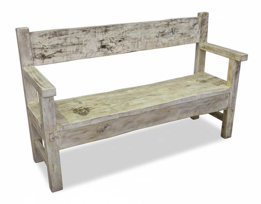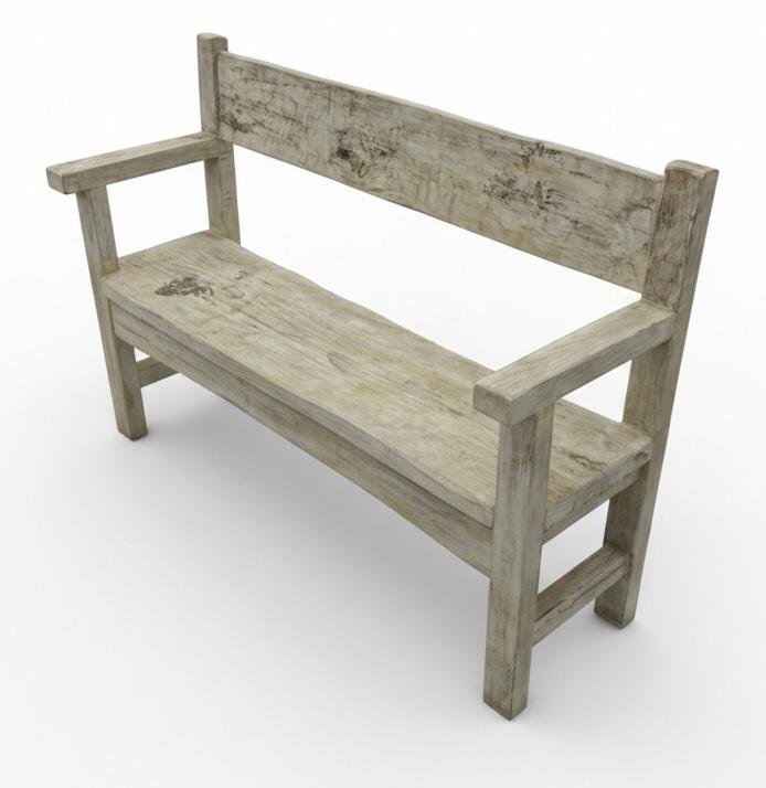 Esta es la versión más compacta y robusta de la serie, ideal para quienes buscan el mismo carácter rústico en un formato más versátil y fácil de ubicar. Estructura reforzada con patas de sección cuadrada y travesaños laterales que garantizan una estabilidad excepcional. El acabado muestra intencionadamente las marcas del tiempo, nudos naturales y un desgaste controlado en tonos crudos y grises, celebrando la belleza de lo imperfecto. Respaldo de una sola pieza y reposabrazos integrados que ofrecen un soporte firme y una silueta geométrica limpia. A diferencia de los modelos de mayor longitud, este diseño compacto es ideal para optimizar espacios sin renunciar al estilo.