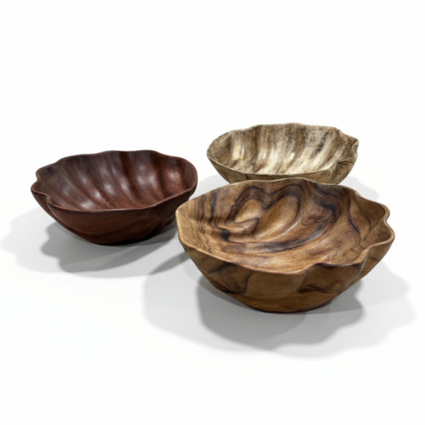 Diseño Escultural Único. Tallado con una forma que imita los contornos suaves y acanalados de una concha de vieira, convirtiéndola en una verdadera pieza de conversación. Madera Exótica de Alta Calidad. Fabricado en Jacaranda con un veteado intenso y tonos cálidos y ricos, que garantizan que cada cuenco sea único e irrepetible. Pulido meticulosamente para un tacto suave y un brillo natural, realzando la belleza de las vetas de la madera.