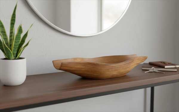 Una pieza imponente y escultural que captura la majestuosidad orgánica de una hoja tropical con un acabado profundo y lujoso. Perfecto para quienes buscan un acento decorativo con carácter y elegancia rústica. Fabricado en Jacaranda, contrasta bellamente con la veta natural de la madera y añade un aire de sofisticación. Cada pieza es única, con la textura de las nervaduras que no solo es visual, sino también táctil, celebrando la belleza imperfecta y rica de la madera.