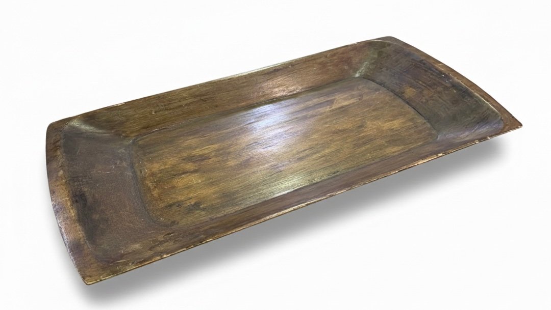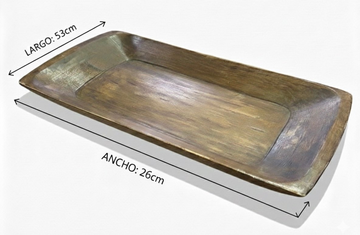 Añada un toque de calidez y autenticidad a su hogar con esta pieza única. Esta bandeja decorativa ha sido tallada a mano, resaltando las vetas naturales y la textura robusta de la madera. Su diseño rectangular de bordes suaves la convierte en el complemento perfecto para ambientes de estilo Wabi-sabi, rústico moderno o industrial.