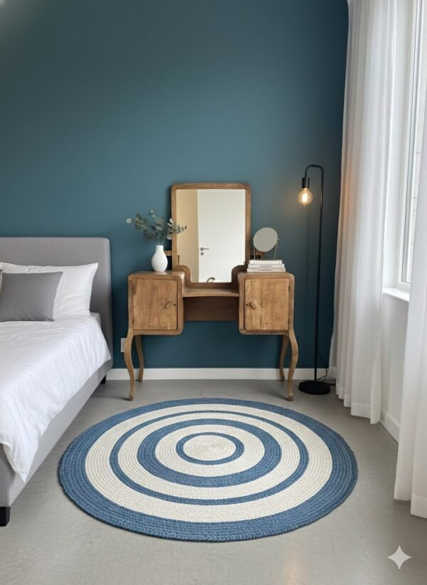 Las patas son curvas (estilo cabriolé o de garra estilizada), aportando un toque de ligereza y sofisticación en contraste con el cuerpo robusto del mueble. Las esquinas redondeadas de los armarios y la base del espejo añaden fluidez visual.